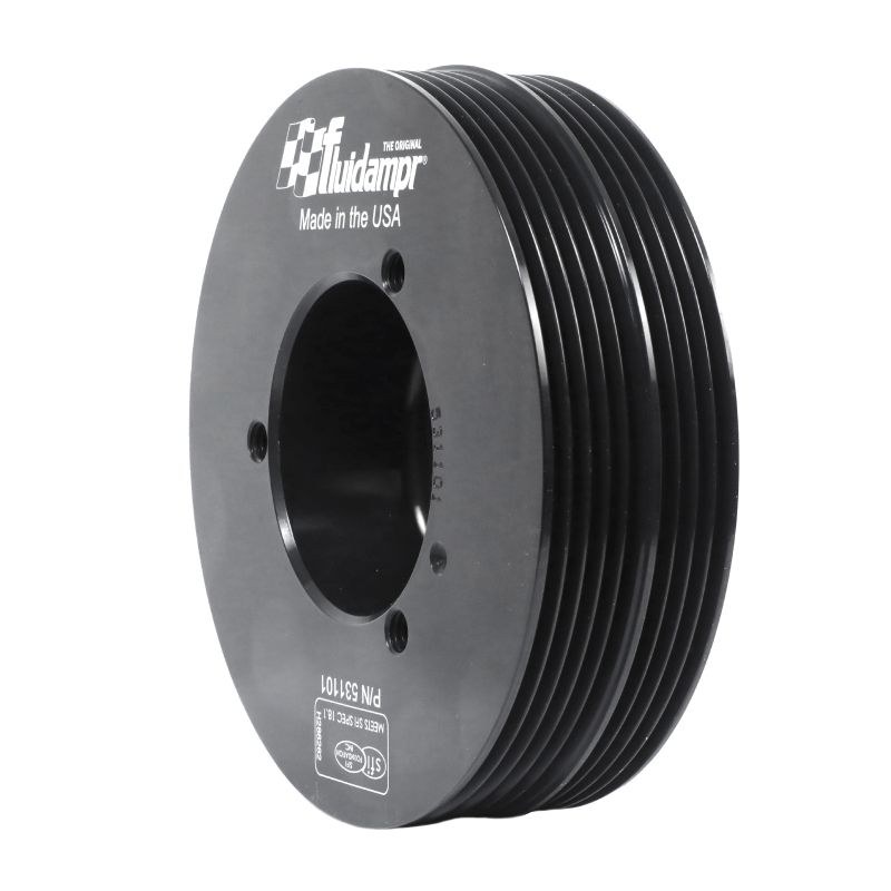 Protect your engine. Modifications can compromise your stock harmonic balancer. Install a Fluidampr performance damper early for best durability. Superior viscous damper design controls harmful torsional vibration across the entire rpm range. Reduce wear on engine components. Reduce risk of crankshaft failure. Improve timing. Unleash lost torque and horsepower. Precision CNC machined and balanced high-grade steel components. Corrosion resistant black zinc finish with engraved timing marks. No maintenance required. Trusted by leading engine builders worldwide. SFI 18.1 certified. Made in USA.