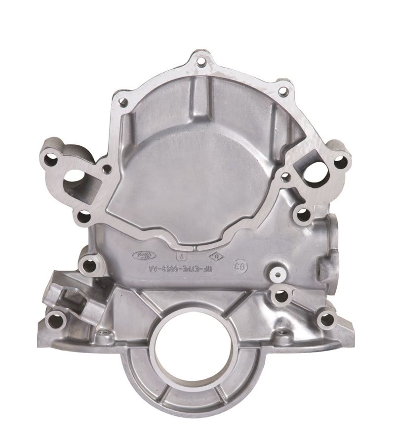 Are you tired of searching junkyards and swap meets for a replacement for your cracked or broken timing cover? If so, these Ford Racing timing chain covers should put a smile on your face. These are direct replacements for your stock timing chain cover. They are all-new castings that have precision-machined gasket and sealing surfaces for superior leak resistance and durability. The covers feature a fuel pump boss and dipstick tube hole, and come with a natural finish.