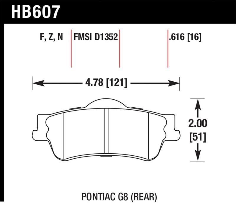 NOTES: Hawk 08-09 Pontiac G8 3.6 Base/6.0 HPS Street Rear Brake Pads