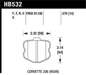 NOTES: Hawk 10-12 Chevy Corvette Grand Sport / 06-12 Corvette Z06 Rear DTC-60 Race Brake Pads