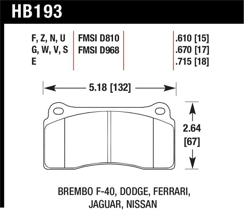 Hawk Performance HB193N.670 HP Brake Pad Sets - Hawk 09-11 Nissan GT-R HP Street Rear Brake Pads for a 2003-2009 Dodge Viper SRT-10, 2008-2009 Dodge Viper SRT-10 ACR, 2015-2015 Dodge Viper Base, 2015-2015 Dodge Viper GT, 2015-2015 Dodge Viper GTS, 2009-2010 Nissan GT-R Base, 2009-2016 Nissan GT-R Premium, 2012-2016 Nissan GT-R Black Edition, 2014-2015 Nissan GT-R Track Edition and 2015-2016 Nissan GT-R Nismo.