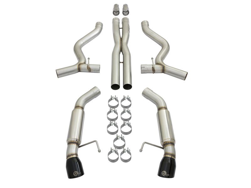 aFe 49-33088-B Exhaust Cat Back - aFe MACHForce XP 3in 304 SS Sport Tone Cat-Back w/ Black Tips 15-17 Ford Mustang V6-3.7L/V8-5.0L for a 2015-2015 Ford Mustang GT 50 Years Limited Edition, 2015-2017 Ford Mustang V6, 2015-2018 Ford Mustang GT and 2015-2018 Ford Mustang GT Premium.