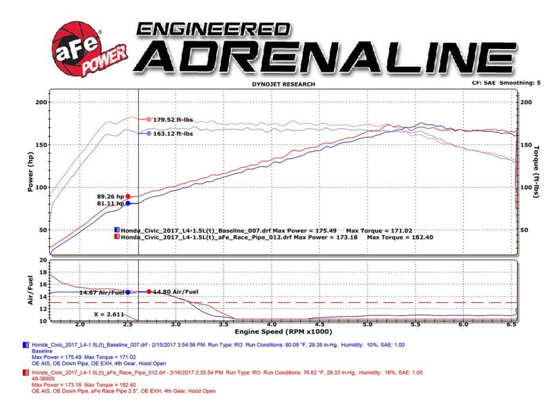 aFe 48-36605 Headers - aFe Power Elite Twisted Steel 16-17 Honda Civic I4-1.5L (t) 2.5in Rear Down-Pipe Mid-Pipe for a 2016-2018 Honda Civic EX-T, 2016-2021 Honda Civic EX-L, 2016-2021 Honda Civic Touring, 2017-2020 Honda Civic Si, 2017-2021 Honda Civic EX, 2017-2021 Honda Civic LX, 2017-2021 Honda Civic Sport and 2017-2021 Honda Civic Sport Touring.