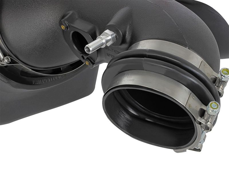 A custom CAD designed roto-molded housing made from high quality cross-linked polyethylene plastic eliminates the use of multiple components and ensures the coolest air intake charge available. This housing is designed for a perfect fitment into the engine compartment and matches the plastic engine cover and trim. Also included, is our stainless steel custom aFe POWER laser etched washers and bolts. This system uses a high quality cross-linked polyethylene plastic, CAD, dyno-tuned intake tube to achieve maximum power gains while maintaining a perfect fit. Also included is a high quality billet aluminum crankcase fitting provided for easy installation. A high quality CAD air scoop guides cool ambient air from behind the front main grille and directly to the performance air filter. This intake scoop is also constructed with high quality cross-linked polyethylene plastic for perfect fitment and sleek design. This Momentum intake system was designed around the largest filter possible to allow maximum performance and filtration. This cone filter has a massive 6" oval flange and is 5" tall Pro DRY S filter media. The Pro DRY S performance air filter features 3-layers of progressively finer mesh synthetic "oil-free" media and is constructed with 100% polyurethane frame for long life and multiple cleaning cycles. Premium stainless steel T-bolt clamps and a silicone coupling are used for strength and durability while also providing the most secure installation available. Also included, is our stainless steel custom aFe POWER laser etched dresser washer and bolts. Momentum intakes are designed with fewer parts for a quick and simple installation.