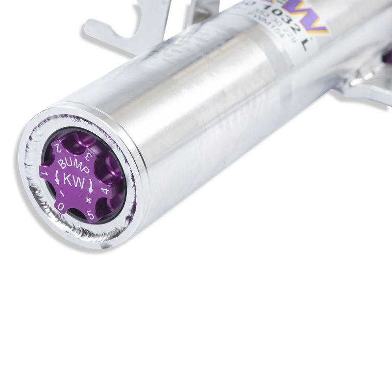 For over 20 years, KW automotive has been the market leader and driving innovation as a manufacturer of individual suspension solutions for the road and in all types of motorsports. No matter where in the world, gearheads, automobile manufacturers and reputable tuners rely on our KW coilovers "Made in Germany". Every KW coilover kit undergoes extensive stress testing before production and is developed and manufactured exclusively in our company headquarters in Fichtenberg, a small in town in Germany, to meet the high standards of our KW quality management. For us as a German manufacturer, it goes without saying that our KW coilover kits will exceed the original equipment manufacturer quality and offer useful and innovative solutions. With an application list comprisin g more than 4,600 options KW guarantees an outstanding selection backed by our Limited Lifetime Warranty.. Unparalleled street performance bred from motorsports heritage, the patented KW-valve technology -or the separate Adjustment -f rebound and compression damping, allows you to individually adapt the vehicle-specific base setup..
