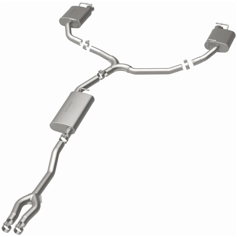 The MagnaFlow 2011-2014 Dodge Charger Street Series Cat-Back Performance Exhaust System 15492 brings out the personality of your 3.6L 2011-2014 Dodge Charger with our signature resonant, powerful engine tone and dyno-proven performance. Thanks to its fast-flowing, mandrel bent 2.5in. main piping and 3 Straight-Through mufflers ending in a Dual Split Rear exit, this Dodge Charger exhaust kit has the performance chops to match its sporty sound and appearance. Upgrade your ride to the next level with an exhaust that has the pipes to put other Dodge Charger's to shame. With this system your vehicle will be producing Moderate exterior and Mild interior sound levels while leaving other cars and trucks feeling envious at every stoplight. Exhaust kit 15492 features a cat-back layout that replaces your ride's stock exhaust components from near the catalytic converter on back. Extensive 3D scanning during development has resulted in a direct-fit design that you can easily install yourself. 15492 is produced using CNC precision robotic manufacturing techniques and is backed by MagnaFlow's 1-year limited finish warranty and limited lifetime construction warranty.
