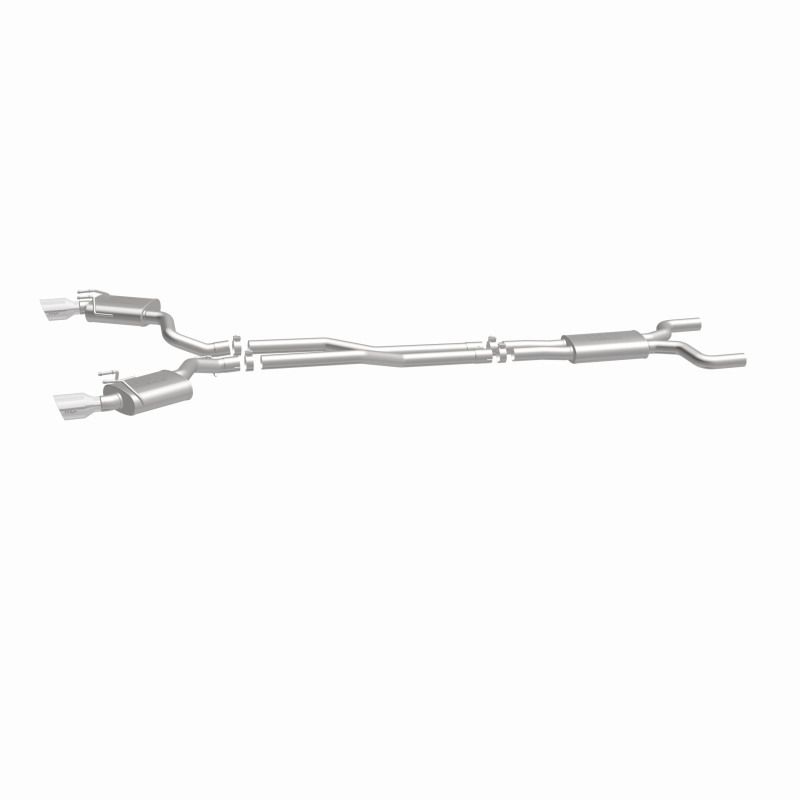 The MagnaFlow 2010-2013 Chevrolet Camaro Street Series Cat-Back Performance Exhaust System 15089 brings out the personality of your 6.2L 2010-2013 Chevrolet Camaro with our signature resonant, powerful engine tone and dyno-proven performance. Thanks to its fast-flowing, mandrel bent 2.5in. main piping and 3 Straight-Through mufflers ending in a Dual Split Rear exit with 4in. Polished Welded-On Double Wall Angle Cut Folded Edge tips, this Chevrolet Camaro exhaust kit has the performance chops to match its sporty sound and appearance. Upgrade your ride to the next level with an exhaust that has the pipes to put other Chevrolet Camaro's to shame. With this system your vehicle will be producing Moderate exterior and Mild interior sound levels while leaving other cars and trucks feeling envious at every stoplight. Exhaust kit 15089 features a cat-back layout that replaces your ride's stock exhaust components from near the catalytic converter on back. Extensive 3D scanning during development has resulted in a direct-fit design that you can easily install yourself. 15089 is produced using CNC precision robotic manufacturing techniques and is backed by MagnaFlow's 1-year limited finish warranty and limited lifetime construction warranty.. Magnaflow Street Series Stainless Cat-Back System.