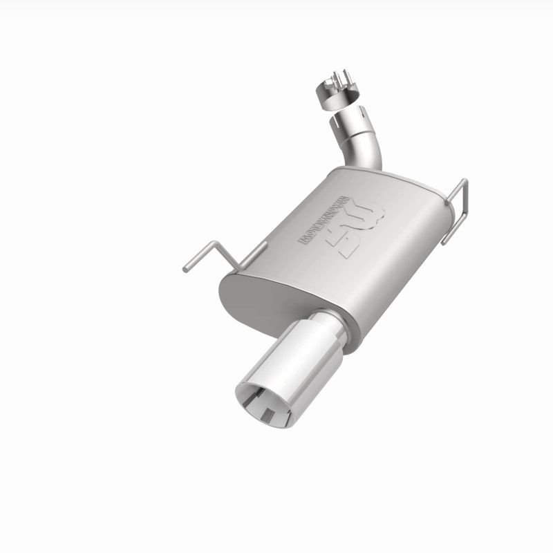 The MagnaFlow Ford Mustang Street Series 15889 brings enhanced engine sound and dyno-proven performance to your 4.0L 2005-2009 Ford Mustang with a healthy helping of our deep, resonant signature exhaust note at Moderate exterior and Mild interior sound levels. Thanks to its durable, corrosion resistant stainless steel design, this Ford Mustang exhaust system will handle whatever tarmac you decide to leave your mark on. This performance exhaust kit features an axle-back layout designed to replace your Ford Mustang’s exhaust system from near the rear axle on back. With its fast-flowing, mandrel bent 2.5in. main piping and 1 Straight-Through mufflers ending in a Single Straight Passenger Side Rear exit with 3.5in. Polished Welded-Double Wall-Angle Cut-Folded Edge tips, your ride will be sounding as awesome as it looks. Extensive 3D scanning during development has resulted in a direct-fit design that you can easily install yourself. 15889 is produced using CNC precision robotic manufacturing techniques and is backed by MagnaFlow’s 1-year limited finish warranty and limited lifetime construction warranty.