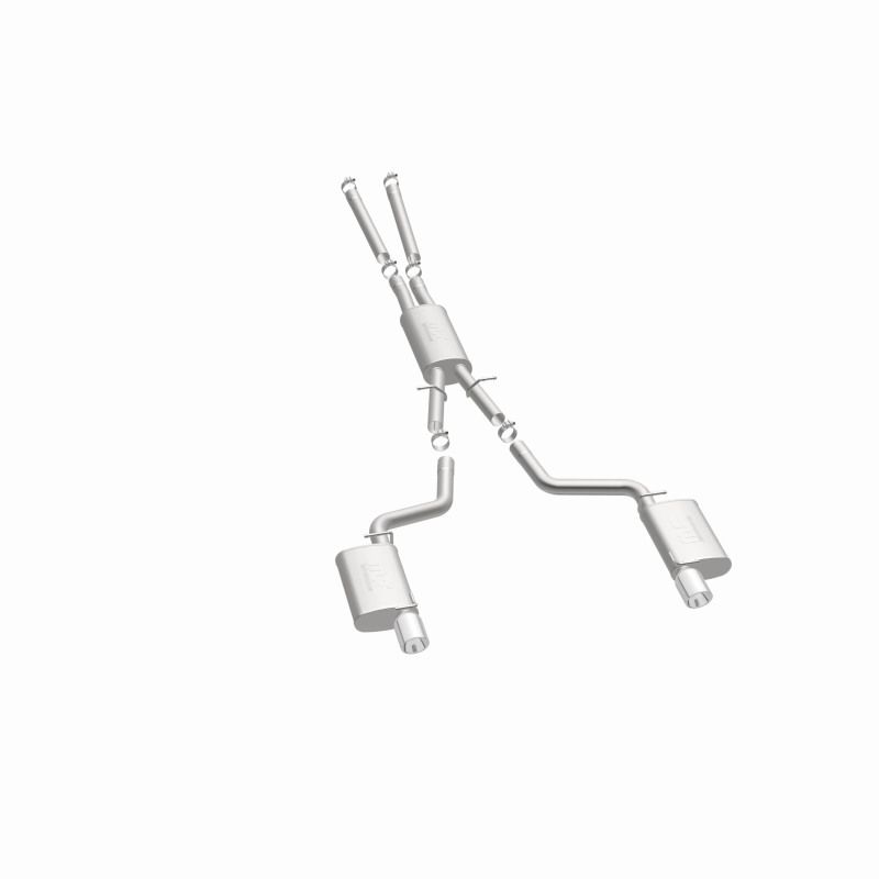 The MagnaFlow 2005-2014 Chrysler 300 Street Series Cat-Back Performance Exhaust System 15629 brings out the personality of your 5.7L 2005-2014 Chrysler 300 with our signature resonant, powerful engine tone and dyno-proven performance. Thanks to its fast-flowing, mandrel bent 2.5in. main piping and 3 Straight-Through mufflers ending in a Dual Split Rear exit with 4in. Polished Welded-On Double Wall Angle Cut Rolled Edge tips, this Chrysler 300 exhaust kit has the performance chops to match its sporty sound and appearance. Upgrade your ride to the next level with an exhaust that has the pipes to put other Chrysler 300's to shame. With this system your vehicle will be producing Moderate exterior and Mild interior sound levels while leaving other cars and trucks feeling envious at every stoplight. Exhaust kit 15629 features a cat-back layout that replaces your ride's stock exhaust components from near the catalytic converter on back. Extensive 3D scanning during development has resulted in a direct-fit design that you can easily install yourself. 15629 is produced using CNC precision robotic manufacturing techniques and is backed by MagnaFlow's 1-year limited finish warranty and limited lifetime construction warranty.. Magnaflow Street Series Stainless Cat-Back System.