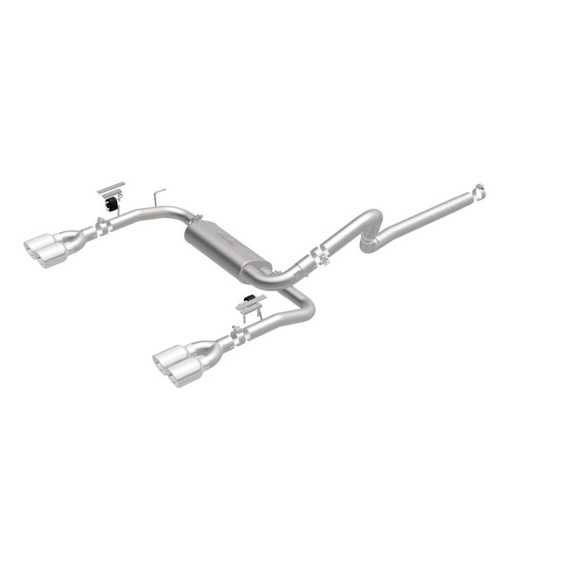 The MagnaFlow Street Series 16723 brings out the personality of your Car with our signature resonant, powerful engine tone and dyno-proven performance. Thanks to its fast-flowing, mandrel bent 3in. main piping and 1 Straight-Through mufflers ending in a Quad Split Rear exit with 4in. Polished Welded-Double Wall-Angle Cut-Rolled Edge-Resonated tips, this Car exhaust kit has the performance chops to match its sporty sound and appearance. Upgrade your ride to the next level with an exhaust that has the pipes to put other Car’s to shame. With this system your vehicle will be producing Moderate exterior and Mild interior sound levels while leaving other cars and trucks feeling envious at every stoplight. Exhaust kit 16723 features a cat-back layout that replaces your ride’s stock exhaust components from near the catalytic converter on back. Extensive 3D scanning during development has resulted in a direct-fit design that you can easily install yourself. 16723 is produced using CNC precision robotic manufacturing techniques and is backed by MagnaFlow’s 1-year limited finish warranty and limited lifetime construction warranty.