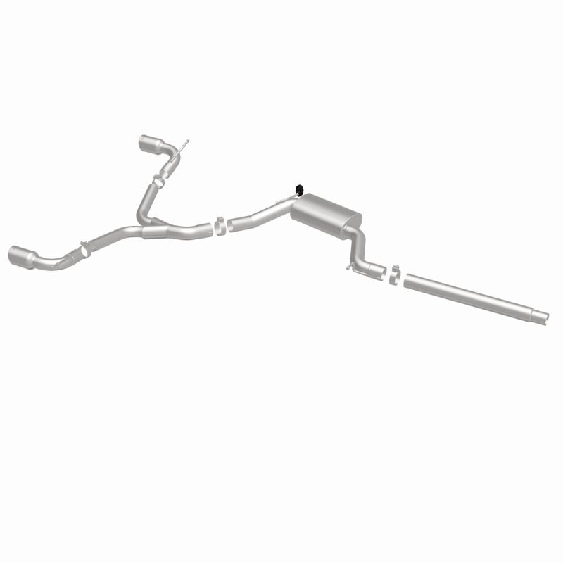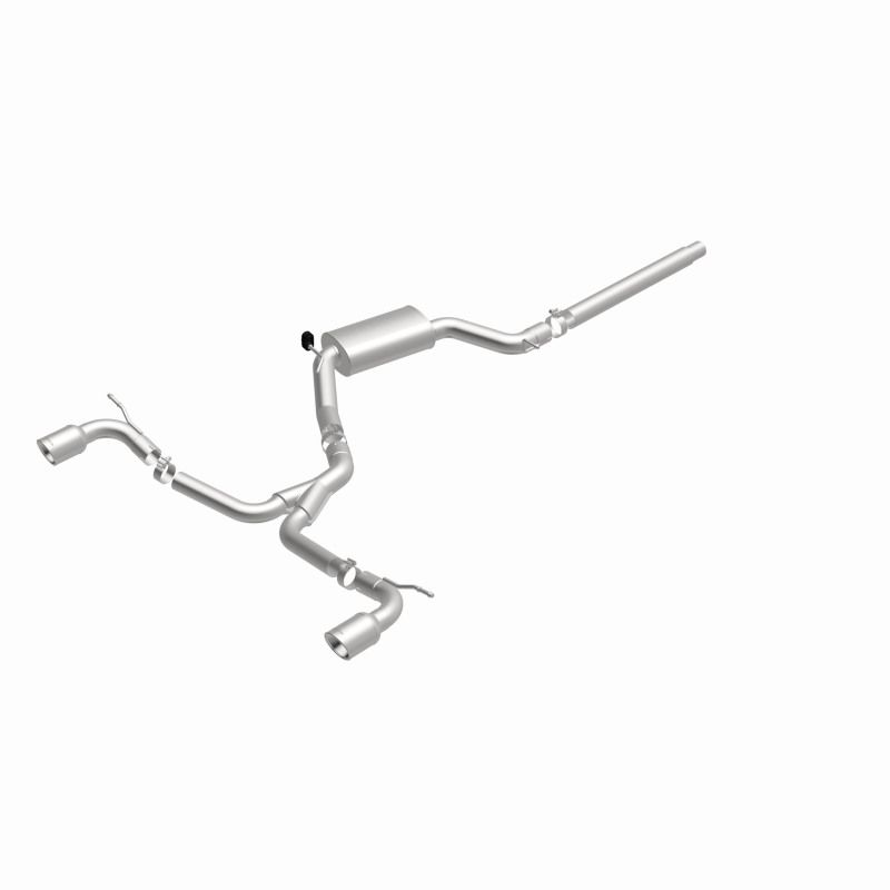 The MagnaFlow 2015-2017 Volkswagen GTI Touring Series Cat-Back Performance Exhaust System 15357 is the perfect partner for your 2.0L 2015-2017 Volkswagen GTI to take on a grand tour or a weekend cruise thanks to the powerful, resonant exhaust note and dyno-proven performance it brings to the table. This durable, corrosion resistant stainless steel exhaust kit is engineered to conquer the miles with ease while enhancing your driving experience with Moderate exterior and Mild interior sound levels generated through its fast-flowing, mandrel bent 3in. main piping and 1 Straight-Through muffler that terminate in a Dual Split Rear exit with 4in. Polished Welded-On Double Wall Angle Cut Rolled Edge tips. 15357 features a cat-back layout design to replace your import's stock exhaust components from the catalytic converter on back. This Volkswagen GTI exhaust system is compatible with 2015-2017 engines. The use of extensive 3D scans made during the development process has resulted in an easy-to-install, direct-fit design that fits your Volkswagen GTI like a glove. 15357 is produced using CNC precision robotic manufacturing techniques and is backed by MagnaFlow's limited lifetime construction warranty.. Magnaflow Touring Series Stainless Cat-Back System.