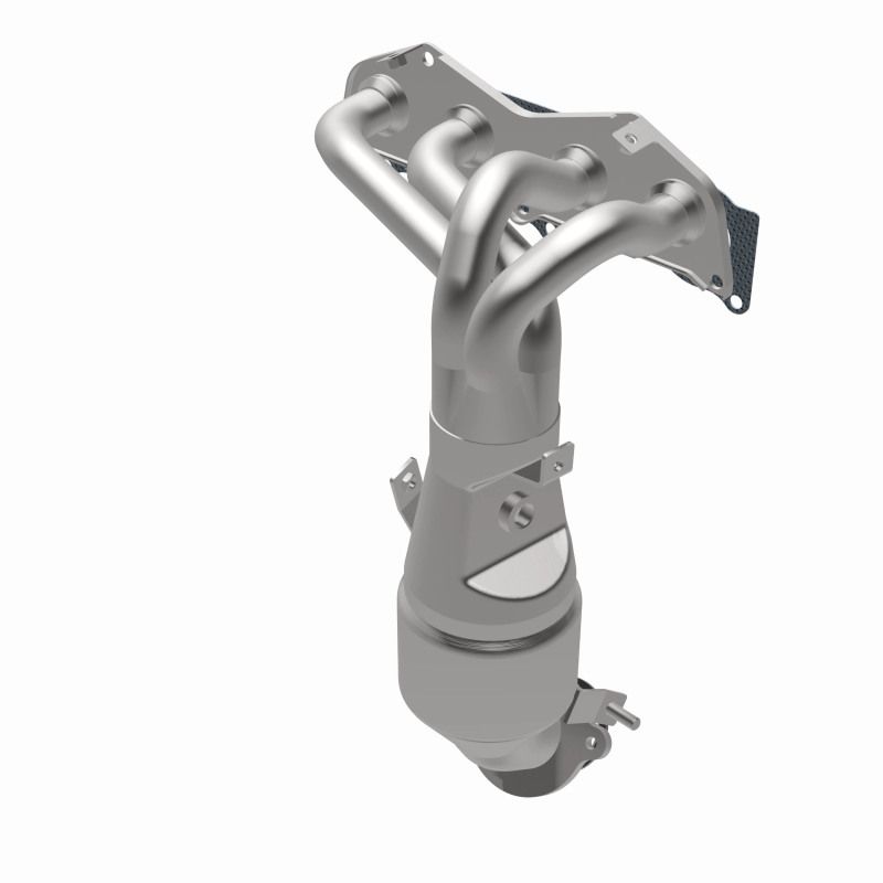 Keep the check engine light off with MagnaFlow California Grade CARB Compliant Direct-Fit Catalytic Converter 452110. With features including free-flowing mandrel-bent tubing and highly corrosion resistant stainless steel construction, easily install this spun body converter yourself using the proper tools, no cutting or welding required. MagnaFlow's state-of-the-art metrology department uses the latest 3D scanning systems during research and development, so you can be confident that your new part will fit and function like the original equipment. By replicating the OE spun body design, the single laser fusion weld greatly reduces the possibility of a leak, and our compact, low-mass design also allows for greater thermal efficiency. This direct-fit catalytic converter is designed specifically for the 2006 Scion tC and interchanges with OE part 25051-28350. The included gaskets & hardware reduce the possibility of a leaking seal while avoiding the need to reuse corroded factory parts for installation. This replacement part is designed to meet or exceed California Air Resource Board requirements, and has undergone additional testing to comply with CARB guidelines to allow for legal use in California and CARB restricted states, for the listed vehicles.. Magnaflow California Manifold Catalytic Converter.