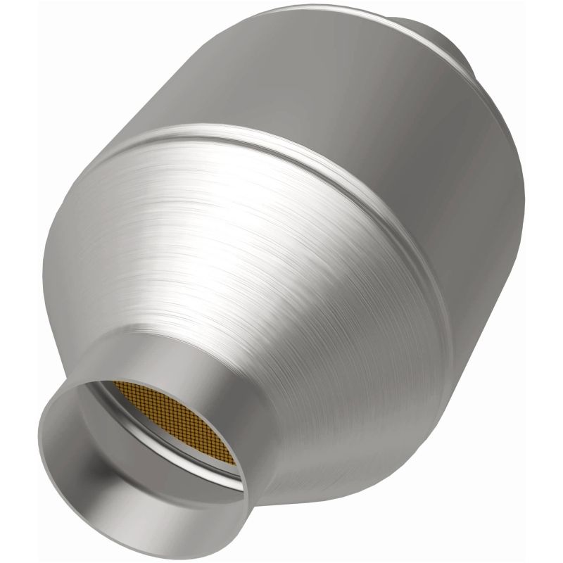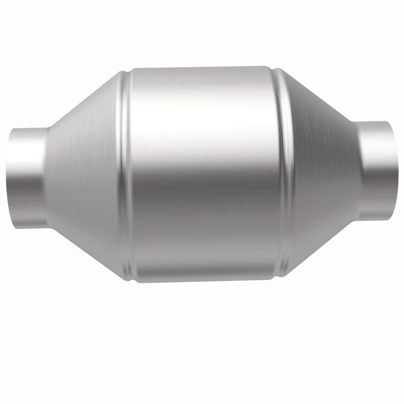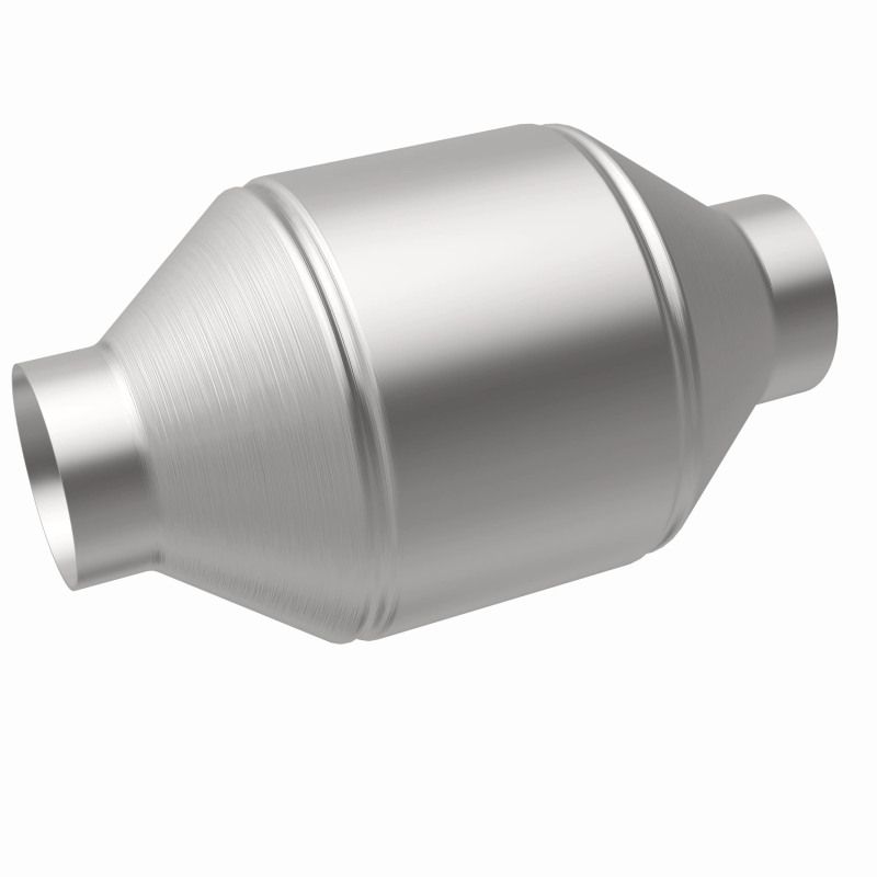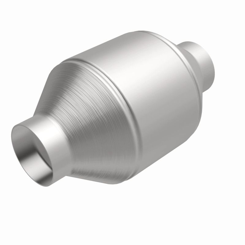 Keep the check engine light off with MagnaFlow OEM Grade Federal/EPA Compliant Universal Catalytic Converter 51655. The Universal design allows the part to fit a wide array of vehicles (cutting and welding required), and the stainless steel construction of this spun body catalytic converter is highly resistant to corrosion. The single laser fusion weld of the spun body greatly reduces the possibility of a leak, and our compact, low-mass design also allows for greater thermal efficiency. This replacement part is designed to meet or exceed Federal emissions requirements set forth by the EPA, complying with legal standards for OBDII Federally registered vehicles with California or Federal/EPA Emission systems.. Magnaflow OEM Grade Universal Catalytic Converter - 2.25in..