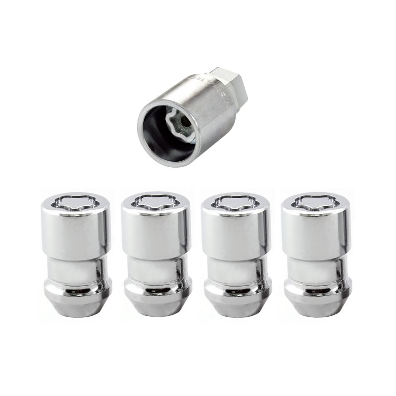 Chrome Cone Seat Wheel Lock Set (1/2-20 Thread Size) - Set of 4 Locks and 1 Key. WHEEL LOCK SET.
