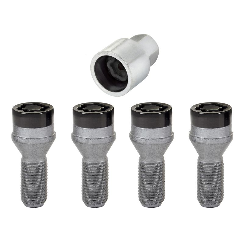 Black Bolt Style Cone Seat Wheel Lock Set (M14 x 1.25) - Set of 4 Locks and 1 Key. WHEEL LOCK SET.