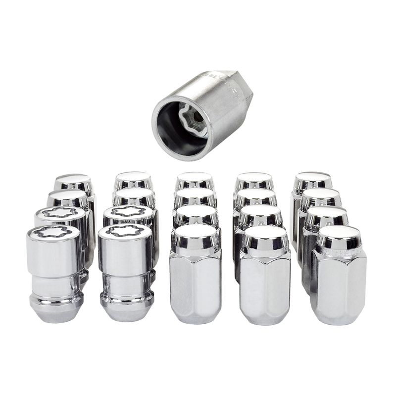 Chrome Cone Seat Wheel Installation Kit for 5 Lug Vehicles (M12 x 1.5 Thread Size); Set of 16 Lug Nuts, 4 Wheel Locks & 1 Key. WHEEL INSTALL KIT.