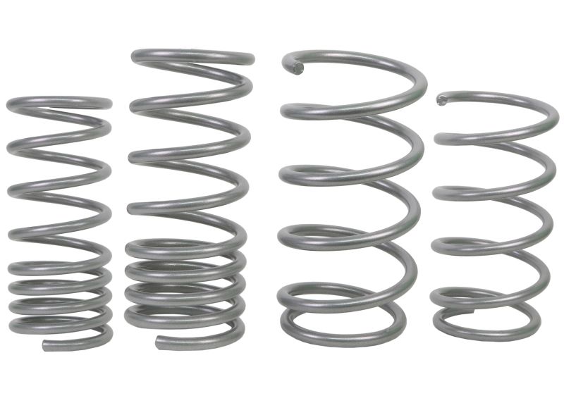 Whiteline Springs deliver improved vehicle performance whilst maintaining safety and ride quality characteristics. By lowering the vehicles centre of gravity, the unique combination of linear and progressive rate coil springs not only improve performance but enhance overall appearance. Developed and manufactured in Europe from the highest quality materials, coating and to the finest tolerances guaranteeing exact fitment. Whiteline Springs are engineered for optimal balance with OEM and aftermarket shocks. For total grip activation match with Whiteline Sway Bar and Essentials kit for unrivalled handling and optimal vehicle performance.
