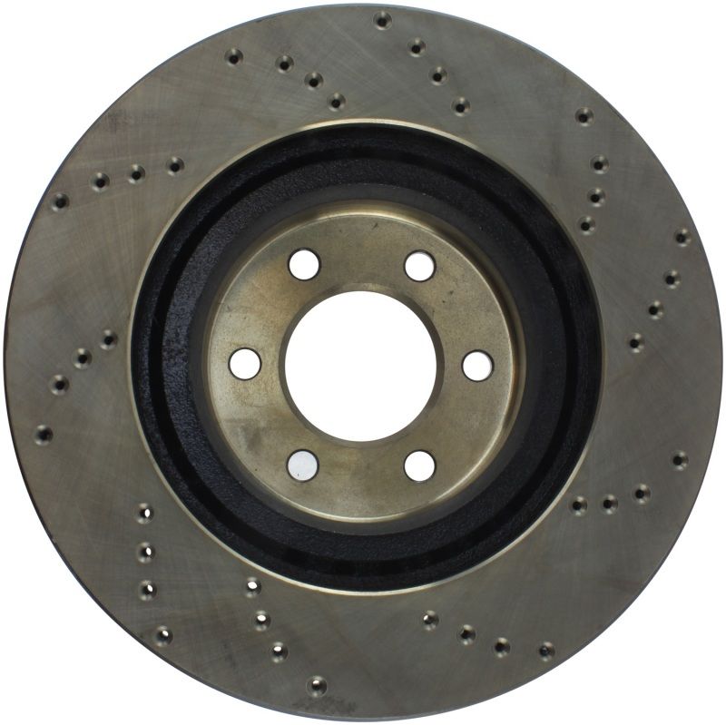 StopTech Drilled Sport Rotors are 1-piece direct replacement brake discs for factory brake systems and stock calipers that look great behind your wheels - and offer significantly improved braking performance. The unique cross-drilling aids with heat and brake dust dispersal; prevents glazing of the pads; adds bite and improves wet and dry braking performance. Built to last; the black paint provides protection from corrosion and the high carbon metallurgy (in most applications) offers quieter operation; better crack resistance and increased performance.