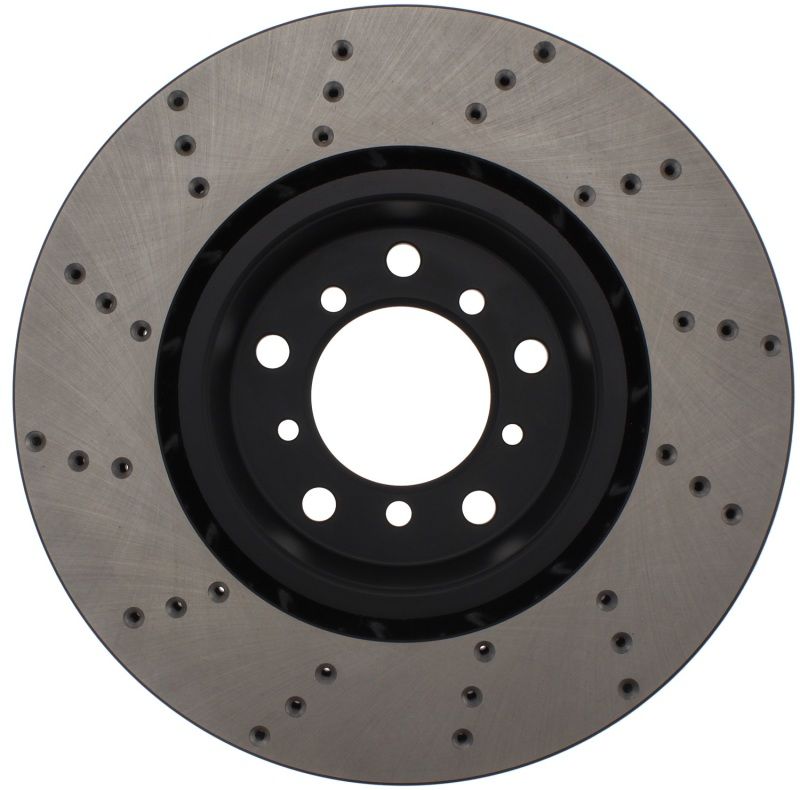 StopTech Drilled Sport Rotors are 1-piece direct replacement brake discs for factory brake systems and stock calipers that look great behind your wheels - and offer significantly improved braking performance. The unique cross-drilling aids with heat and brake dust dispersal; prevents glazing of the pads; adds bite and improves wet and dry braking performance. Built to last; the black paint provides protection from corrosion and the high carbon metallurgy (in most applications) offers quieter operation; better crack resistance and increased performance.