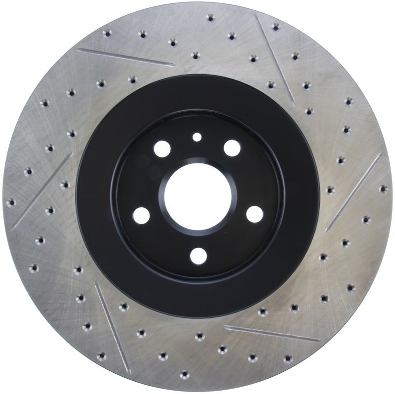 StopTech Drilled and Slotted Sport Rotors are 1-piece direct replacement brake discs for factory brake systems and stock calipers that look great behind your wheels – and offer significantly improved braking performance. The unique cross-drilling and slotting aids with heat and brake dust dispersal; prevents glazing of the pads; adds bite and improves wet and dry braking performance. Built to last; the black e-coating provides protection from corrosion and the high carbon metallurgy (in most applications) offers quieter operation; better crack resistance and increased performance.