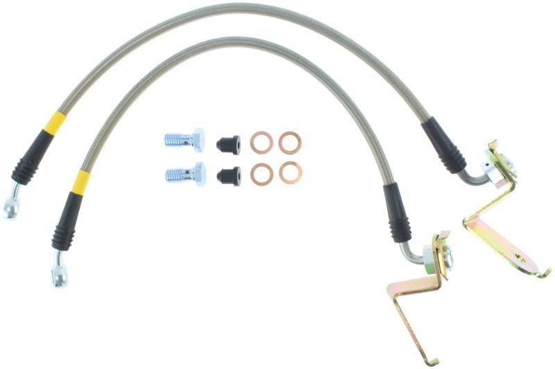 StopTech Stainless Steel Braided Brake Lines provide a quicker; firmer; more consistent pedal response by maintaining consistent brake pressure. Additionally; stainless steel lines provide precision brake modulation; especially during threshold braking. The improvement in pedal feel is more dramatic on older vehicles where the factory rubber line may have softened and swelled due to age. A variety of end fittings are available to meet application needs. All fittings are engineered for proper fit and durability. All necessary brackets and fasteners are included with each line kit.