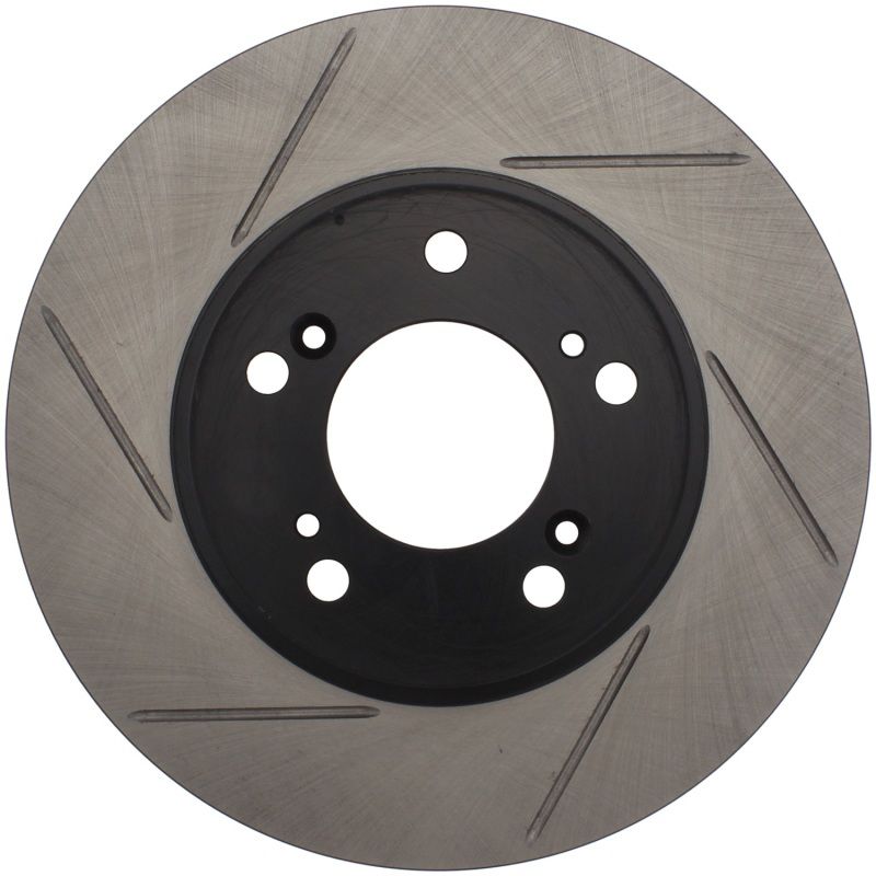 StopTech Slotted Sport Rotors are 1-piece direct replacement brake discs for factory brake systems and stock calipers that look great behind your wheels - and offer significantly improved braking performance. The unique slotting aids with heat and brake dust dispersal; prevents glazing of the pads; adds bite and improves wet and dry braking performance. Built to last; the black paint provides protection from corrosion and the high carbon metallurgy (in most applications) offers quieter operation; better crack resistance and increased performance.