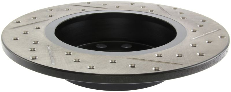 StopTech Drilled and Slotted Sport Rotors are 1-piece direct replacement brake discs for factory brake systems and stock calipers that look great behind your wheels - and offer significantly improved braking performance. The unique cross-drilling and slotting aids with heat and brake dust dispersal; prevents glazing of the pads; adds bite and improves wet and dry braking performance. Built to last; the painted hat provides protection from corrosion and the high carbon metallurgy (in most applications) offers quieter operation; better crack resistance and increased performance.