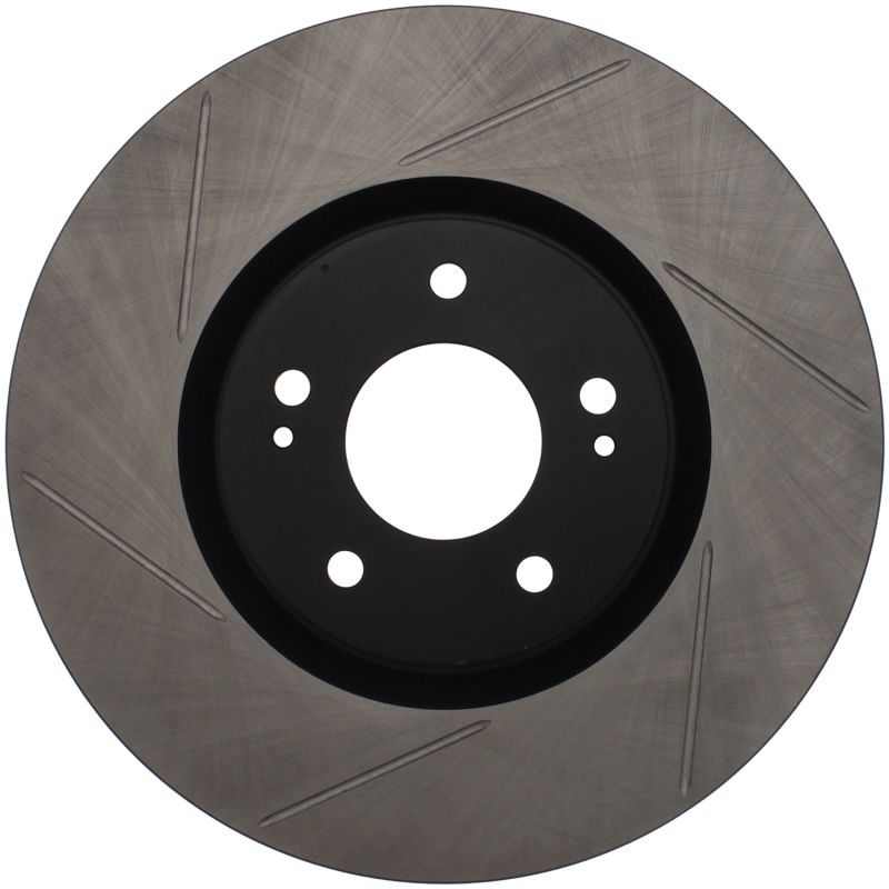 StopTech Slotted Sport Rotors are 1-piece direct replacement brake discs for factory brake systems and stock calipers that look great behind your wheels - and offer significantly improved braking performance. The unique slotting aids with heat and brake dust dispersal; prevents glazing of the pads; adds bite and improves wet and dry braking performance. Built to last; the black paint provides protection from corrosion and the high carbon metallurgy (in most applications) offers quieter operation; better crack resistance and increased performance.