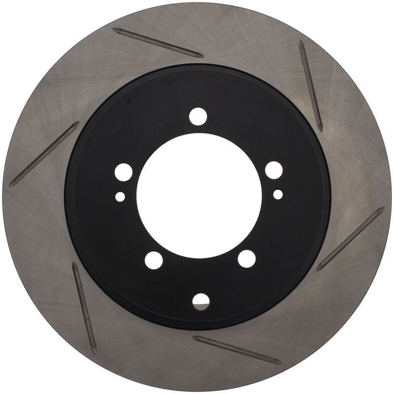 StopTech Slotted Sport Rotors are 1-piece direct replacement brake discs for factory brake systems and stock calipers that look great behind your wheels - and offer significantly improved braking performance. The unique slotting aids with heat and brake dust dispersal; prevents glazing of the pads; adds bite and improves wet and dry braking performance. Built to last; the black paint provides protection from corrosion and the high carbon metallurgy (in most applications) offers quieter operation; better crack resistance and increased performance.