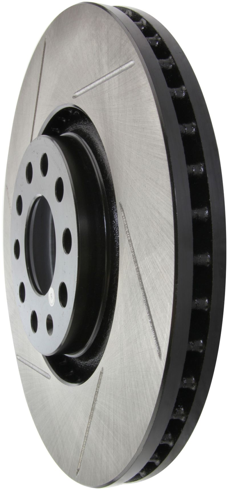 StopTech Slotted Sport Rotors are 1-piece direct replacement brake discs for factory brake systems and stock calipers that look great behind your wheels - and offer significantly improved braking performance. The unique slotting aids with heat and brake dust dispersal; prevents glazing of the pads; adds bite and improves wet and dry braking performance. Built to last; the black paint provides protection from corrosion and the high carbon metallurgy (in most applications) offers quieter operation; better crack resistance and increased performance.