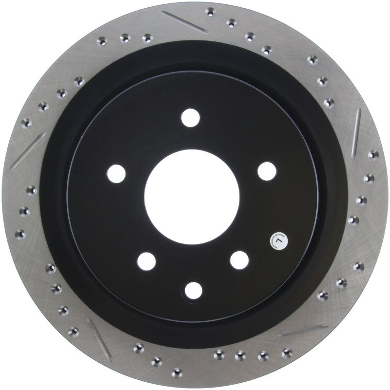 StopTech Drilled and Slotted Sport Rotors are 1-piece direct replacement brake discs for factory brake systems and stock calipers that look great behind your wheels – and offer significantly improved braking performance. The unique cross-drilling and slotting aids with heat and brake dust dispersal; prevents glazing of the pads; adds bite and improves wet and dry braking performance. Built to last; the black e-coating provides protection from corrosion and the high carbon metallurgy (in most applications) offers quieter operation; better crack resistance and increased performance.