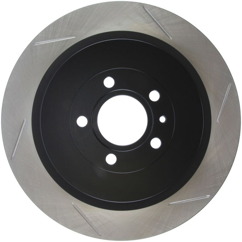 StopTech Slotted Sport Rotors are 1-piece direct replacement brake discs for factory brake systems and stock calipers that look great behind your wheels - and offer significantly improved braking performance. The unique slotting aids with heat and brake dust dispersal; prevents glazing of the pads; adds bite and improves wet and dry braking performance. Built to last; the black paint provides protection from corrosion and the high carbon metallurgy (in most applications) offers quieter operation; better crack resistance and increased performance.