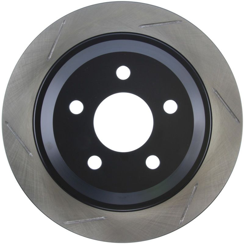 StopTech Slotted Sport Rotors are 1-piece direct replacement brake discs for factory brake systems and stock calipers that look great behind your wheels - and offer significantly improved braking performance. The unique slotting aids with heat and brake dust dispersal; prevents glazing of the pads; adds bite and improves wet and dry braking performance. Built to last; the black paint provides protection from corrosion and the high carbon metallurgy (in most applications) offers quieter operation; better crack resistance and increased performance.
