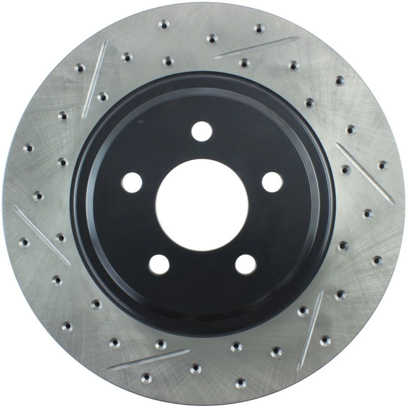 StopTech Drilled and Slotted Sport Rotors are 1-piece direct replacement brake discs for factory brake systems and stock calipers that look great behind your wheels - and offer significantly improved braking performance. The unique cross-drilling and slotting aids with heat and brake dust dispersal; prevents glazing of the pads; adds bite and improves wet and dry braking performance. Built to last; the painted hat provides protection from corrosion and the high carbon metallurgy (in most applications) offers quieter operation; better crack resistance and increased performance.
