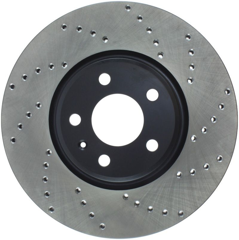 StopTech Drilled Sport Rotors are 1-piece direct replacement brake discs for factory brake systems and stock calipers that look great behind your wheels - and offer significantly improved braking performance. The unique cross-drilling aids with heat and brake dust dispersal; prevents glazing of the pads; adds bite and improves wet and dry braking performance. Built to last; the black paint provides protection from corrosion and the high carbon metallurgy (in most applications) offers quieter operation; better crack resistance and increased performance.