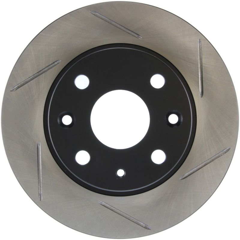 StopTech Slotted Sport Rotors are 1-piece direct replacement brake discs for factory brake systems and stock calipers that look great behind your wheels - and offer significantly improved braking performance. The unique slotting aids with heat and brake dust dispersal; prevents glazing of the pads; adds bite and improves wet and dry braking performance. Built to last; the black paint provides protection from corrosion and the high carbon metallurgy (in most applications) offers quieter operation; better crack resistance and increased performance.