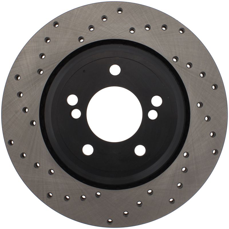 StopTech Drilled Sport Rotors are 1-piece direct replacement brake discs for factory brake systems and stock calipers that look great behind your wheels - and offer significantly improved braking performance. The unique cross-drilling aids with heat and brake dust dispersal; prevents glazing of the pads; adds bite and improves wet and dry braking performance. Built to last; the black paint provides protection from corrosion and the high carbon metallurgy (in most applications) offers quieter operation; better crack resistance and increased performance.