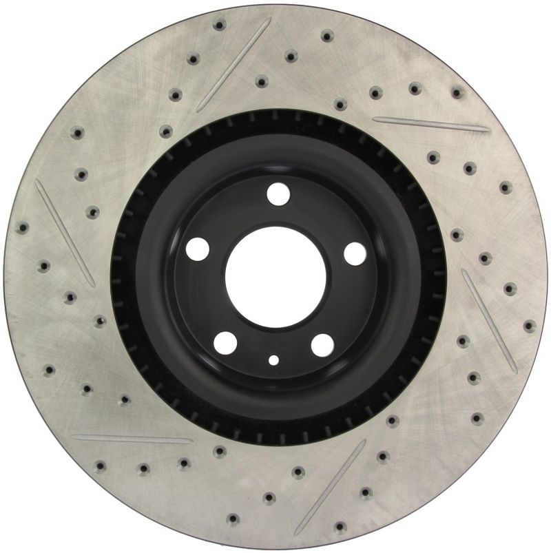 StopTech Drilled and Slotted Sport Rotors are 1-piece direct replacement brake discs for factory brake systems and stock calipers that look great behind your wheels – and offer significantly improved braking performance. The unique cross-drilling and slotting aids with heat and brake dust dispersal; prevents glazing of the pads; adds bite and improves wet and dry braking performance. Built to last; the black e-coating provides protection from corrosion and the high carbon metallurgy (in most applications) offers quieter operation; better crack resistance and increased performance.