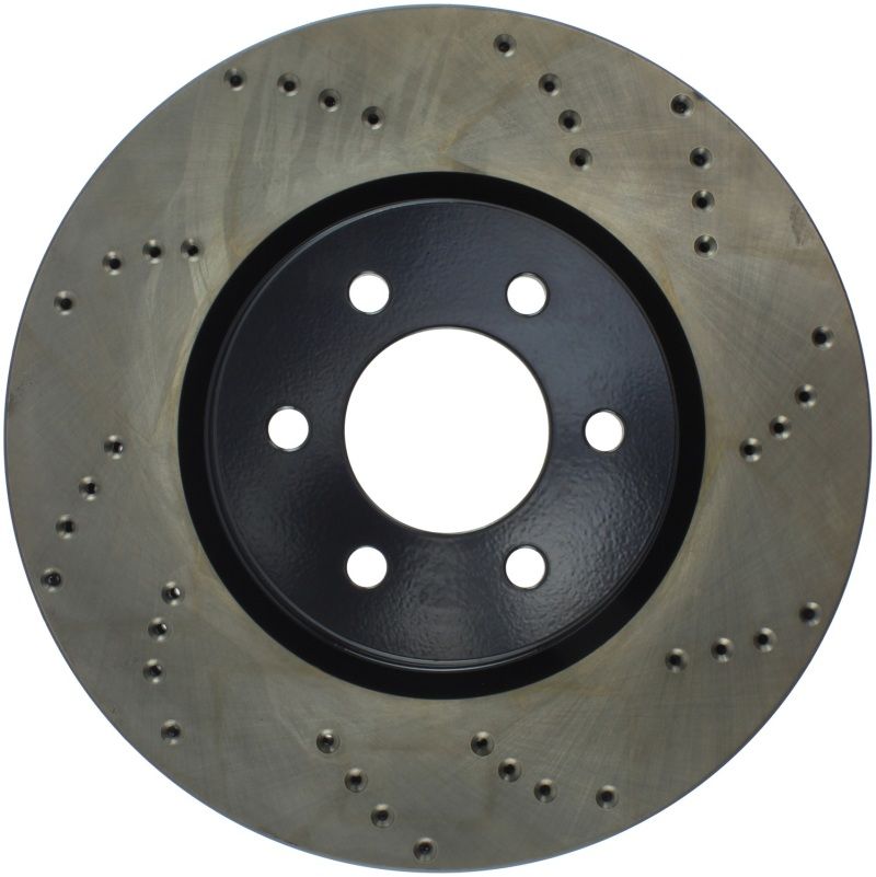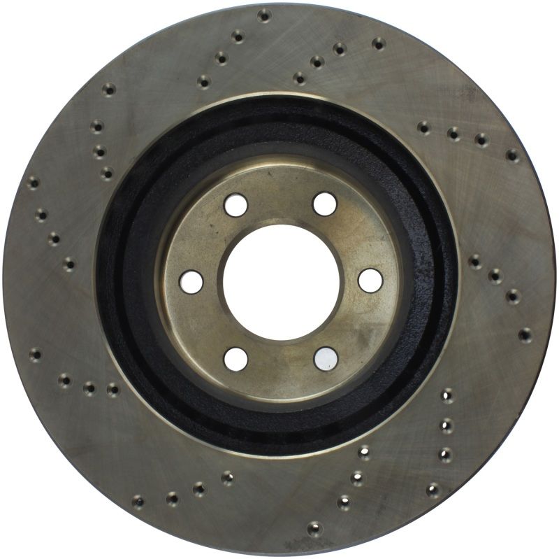 StopTech Drilled Sport Rotors are 1-piece direct replacement brake discs for factory brake systems and stock calipers that look great behind your wheels - and offer significantly improved braking performance. The unique cross-drilling aids with heat and brake dust dispersal; prevents glazing of the pads; adds bite and improves wet and dry braking performance. Built to last; the black paint provides protection from corrosion and the high carbon metallurgy (in most applications) offers quieter operation; better crack resistance and increased performance.