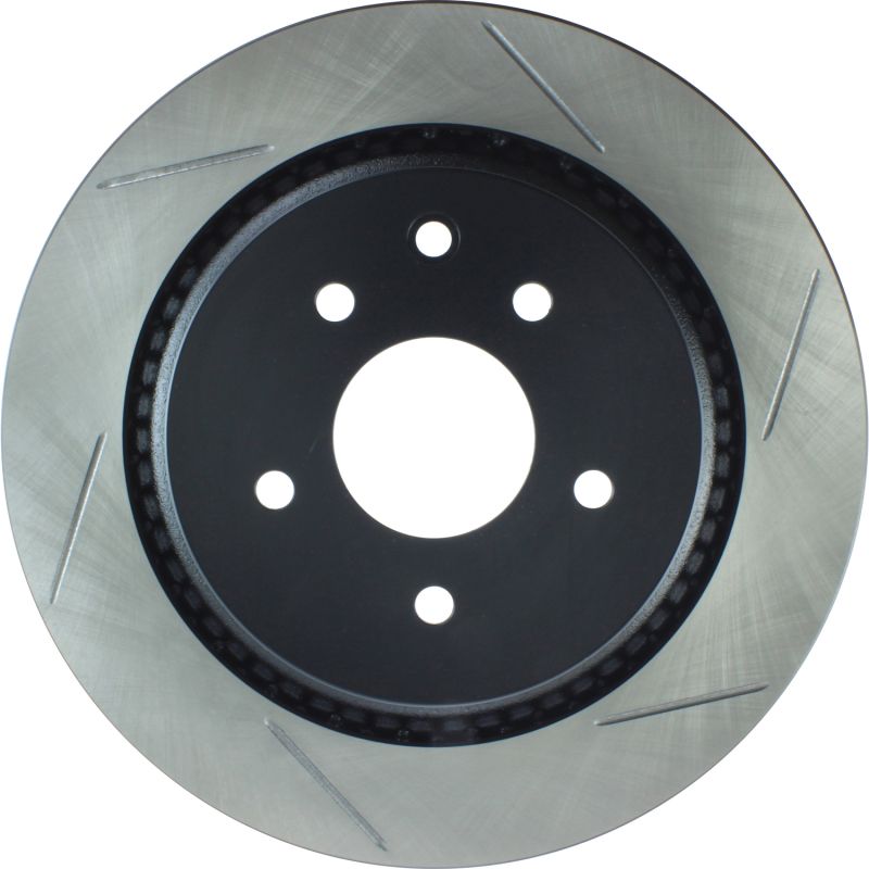 StopTech Slotted Sport Rotors are 1-piece direct replacement brake discs for factory brake systems and stock calipers that look great behind your wheels - and offer significantly improved braking performance. The unique slotting aids with heat and brake dust dispersal; prevents glazing of the pads; adds bite and improves wet and dry braking performance. Built to last; the black paint provides protection from corrosion and the high carbon metallurgy (in most applications) offers quieter operation; better crack resistance and increased performance.