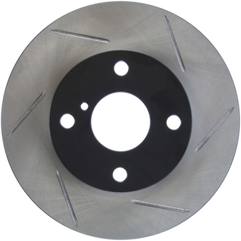 StopTech Slotted Sport Rotors are 1-piece direct replacement brake discs for factory brake systems and stock calipers that look great behind your wheels - and offer significantly improved braking performance. The unique slotting aids with heat and brake dust dispersal; prevents glazing of the pads; adds bite and improves wet and dry braking performance. Built to last; the black paint provides protection from corrosion and the high carbon metallurgy (in most applications) offers quieter operation; better crack resistance and increased performance.