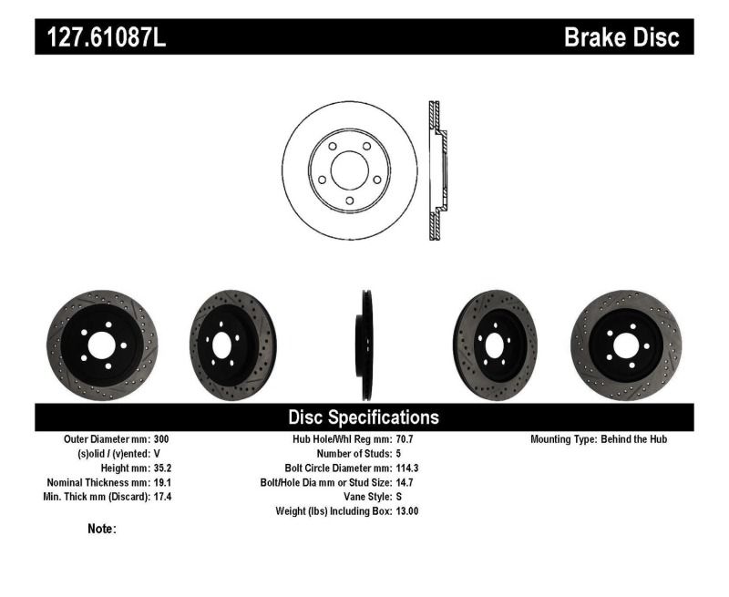 NOTES: StopTech 05-10 Ford Mustang Slotted & Drilled Left Rear Rotor