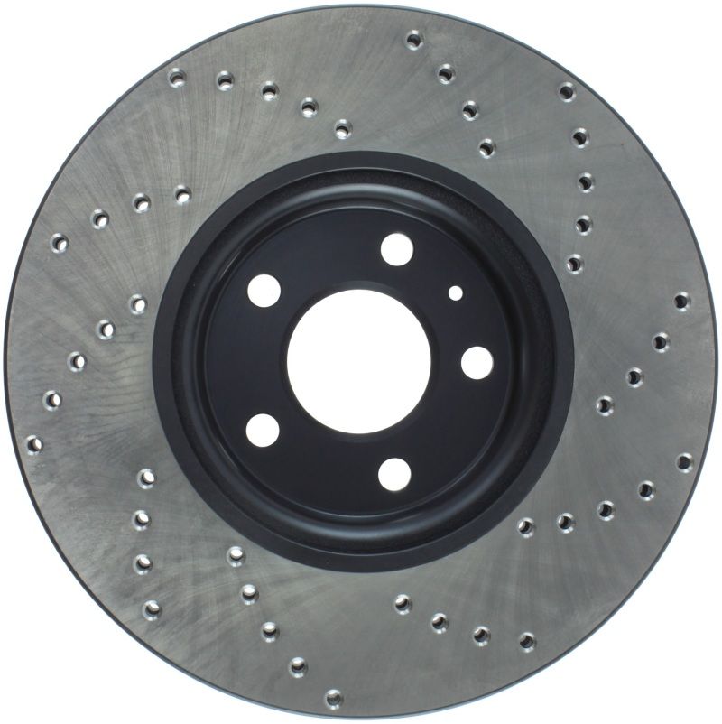 StopTech Drilled Sport Rotors are 1-piece direct replacement brake discs for factory brake systems and stock calipers that look great behind your wheels - and offer significantly improved braking performance. The unique cross-drilling aids with heat and brake dust dispersal; prevents glazing of the pads; adds bite and improves wet and dry braking performance. Built to last; the black paint provides protection from corrosion and the high carbon metallurgy (in most applications) offers quieter operation; better crack resistance and increased performance.