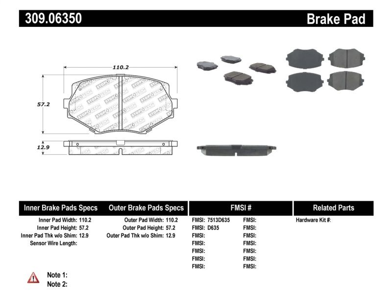 NOTES: StopTech Performance 94-97/99-05 Miata w/Normal Suspension Front Brake Pads D635