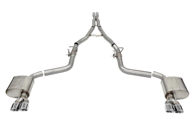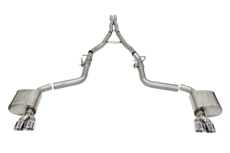 Must have valved exhaust. CORSA valve assembly bolts directly to stock actuator motor.. 2.75in. Valved Cat-Back Dual Rear Exit with Twin 3.5in. Polished Pro SeriesĀ® Tips.