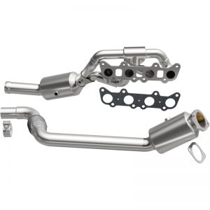 Keep the check engine light off with MagnaFlow OEM Grade Federal/EPA Compliant Direct-Fit Catalytic Converter 22-214. With features including free-flowing mandrel-bent tubing and highly corrosion resistant stainless steel construction, easily install this spun body converter yourself using the proper tools, no cutting or welding required. MagnaFlow's state-of-the-art metrology department uses the latest 3D scanning systems during research and development, so you can be confident that your new part will fit and function like the original equipment. By replicating the OE spun body design, the single laser fusion weld greatly reduces the possibility of a leak, and our compact, low-mass design also allows for greater thermal efficiency. This direct-fit catalytic converter is designed specifically for the 2015-2022 Ford Mustang and interchanges with OE parts FR3Z-5E212-P and FR3Z-5G232-F, among others. The included gaskets & hardware reduce the possibility of a leaking seal while avoiding the need to reuse corroded factory parts for installation. This replacement part is designed to meet or exceed Federal emissions requirements set forth by the EPA, complying with legal standards for OBDII Federally registered vehicles with California or Federal/EPA Emission systems.. Magnaflow OEM Grade Manifold Catalytic Converter.
