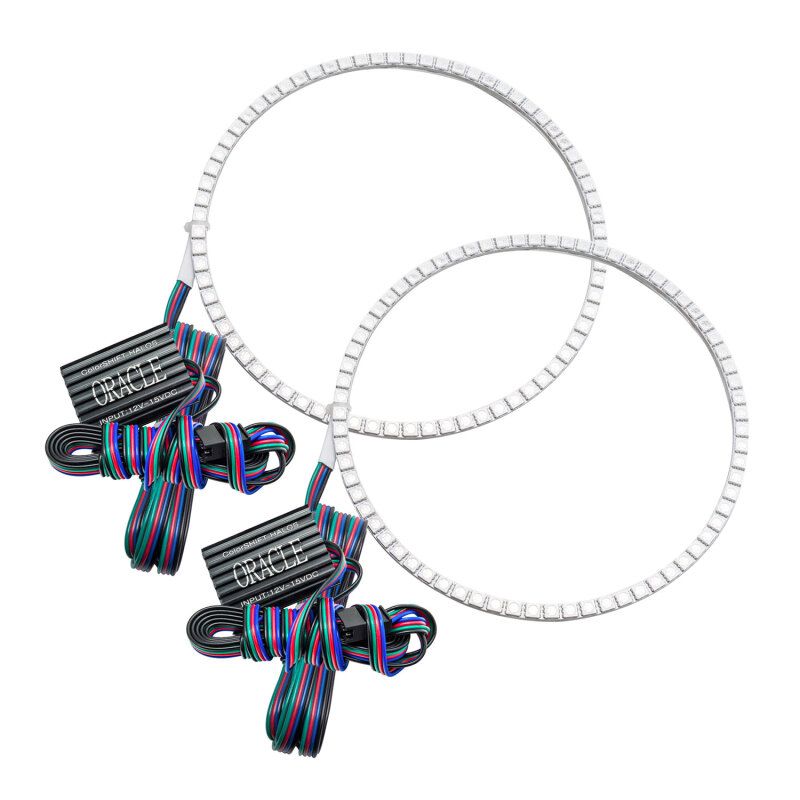 The ColorSHIFT(tm) Halo Kit can produce any color including whites from 3000K-15000K with the push of a button. This allows the user to dial-in the exact color rings that they desire. These 3-Chip 5050 SMD rings are BRIGHT, and for some they may be too bright, that is why (for the first time) the user has full control over the ring brightness. ORACLE SMD or "Surface Mount Diode" Halos utilize an advanced type of LED chip that can produce brilliant light output while only consuming a small amount of power. The SMD chips are installed onto a CAD designed 6-layer PCB (Printed Circuit Board) which is very sturdy and will not break if pressured. The PCB can easily be mounted to a headlight housing using the pre-installed 3M adhesive tape backing.