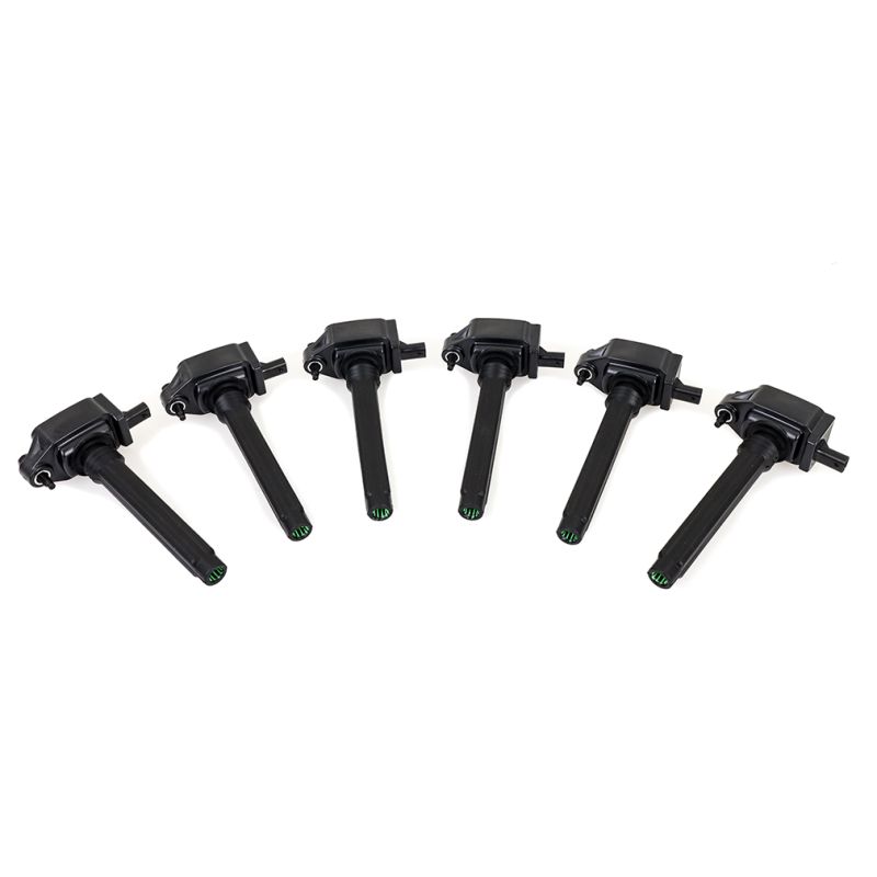 The basic requirements for a properly running engine are fuel, air, compression, and spark. Before increasing the power of your 4-Cylinder or V6, it is wise to ensure all maintenance is up to date and these processes are performing as intended. Weak spark from your ignition system can result in misfiring under high load driving and spark blow-out, which hinders performance. -- Mishimoto is proud to launch our new lineup of ignition coils, aimed at providing high-quality replacements that can bring your vehicle up to Stage 0 before moving on to horsepower adding modifications. Our ignition coils are designed and tested to meet or exceed OEM Jeep performance standards and are available as a single coil or in a set of six. Once installed with a set of new spark plugs, one can expect a refreshed ignition system with improved engine startup, a smoother idle, and restored performance from your Wrangler. The primary frame of our coils is constructed from extremely robust phenolic resin, ensuring optimal longevity in high temperature environments. The precision lower boot provides a barrier against moisture entry into the plug well, eliminating chances for spark plug contamination. In addition, our coils are pre-lubricated with dielectric grease to prevent corrosion and ensure an optimal connection between the spark plug and coil. -- Mishimoto ignition coils are an ideal replacement for worn or defective factory coils. As with all our products, these ignition coils include our signature Mishimoto Lifetime Warranty.