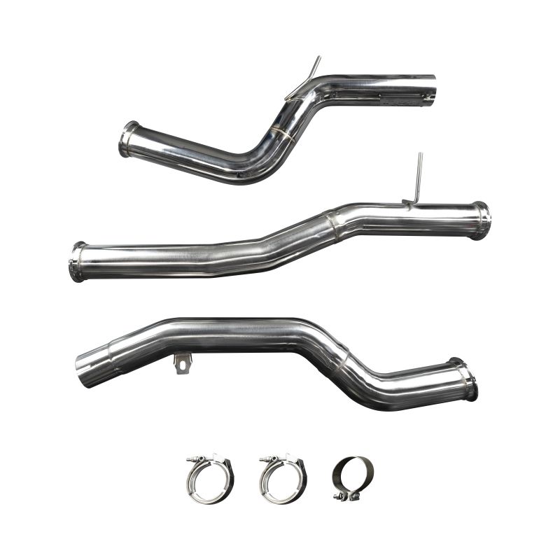 Massive 3.50in (89mm) tubing makes up the entire exhaust, from the front section all the way back to the tip-less exit point. This exhaust eliminates all factory mufflers, resonators, and valves for race inspired weight reduction and sound. Outstanding flow from the 3.5in tubing will let that turbo breathe and the open exhaust design will deliver an aggressive, throaty, crackling exhaust tone that will keep you smiling from ear to ear.