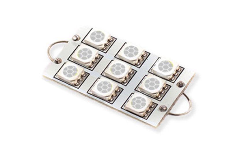 Features Direct replacement for factory 44mm hook-and-loop style bulb Increased output with LED appearance Plug and play simple installation Overview Design. The 44mm SML9 LED bulb is a direct replacement for any 44mm-size bulb commonly found in door lights and trunk lights in many vehicles. Populated with nine 5050-size Epistar SMDs the SML9 upgrades the factory yellowish incandescent bulb to a more modern LED appearance while adding far more light output than the factory bulb. With its durable metal terminals it will fit snugly in the socket and its light weight means it won't vibrate loose over time. Reliability. Unlike other bulbs on the market this bulb is built with constant-current circuitry along with transient suppression. That means this bulb will last for years not months with no flickering or failure. And like every Diode Dynamics product it's backed by an industry-leading three-year replacement warranty. Brightness. With 103 lumens of true measured output the SML9 LED will provide far more light output compared to your original 44mm-sized bulb. All Diode Dynamics LED lighting is rated with accurate measured lumen figures not calculations or guesses. We test the true output in-house and provide you the real numbers to compare. Colors. In addition to vibrant colors of blue red and amber the SML9 is available in a cool white 6000K option as well. Whether you want a modern cool white appearance or a color to show off your unique style we have the color to fit your need!